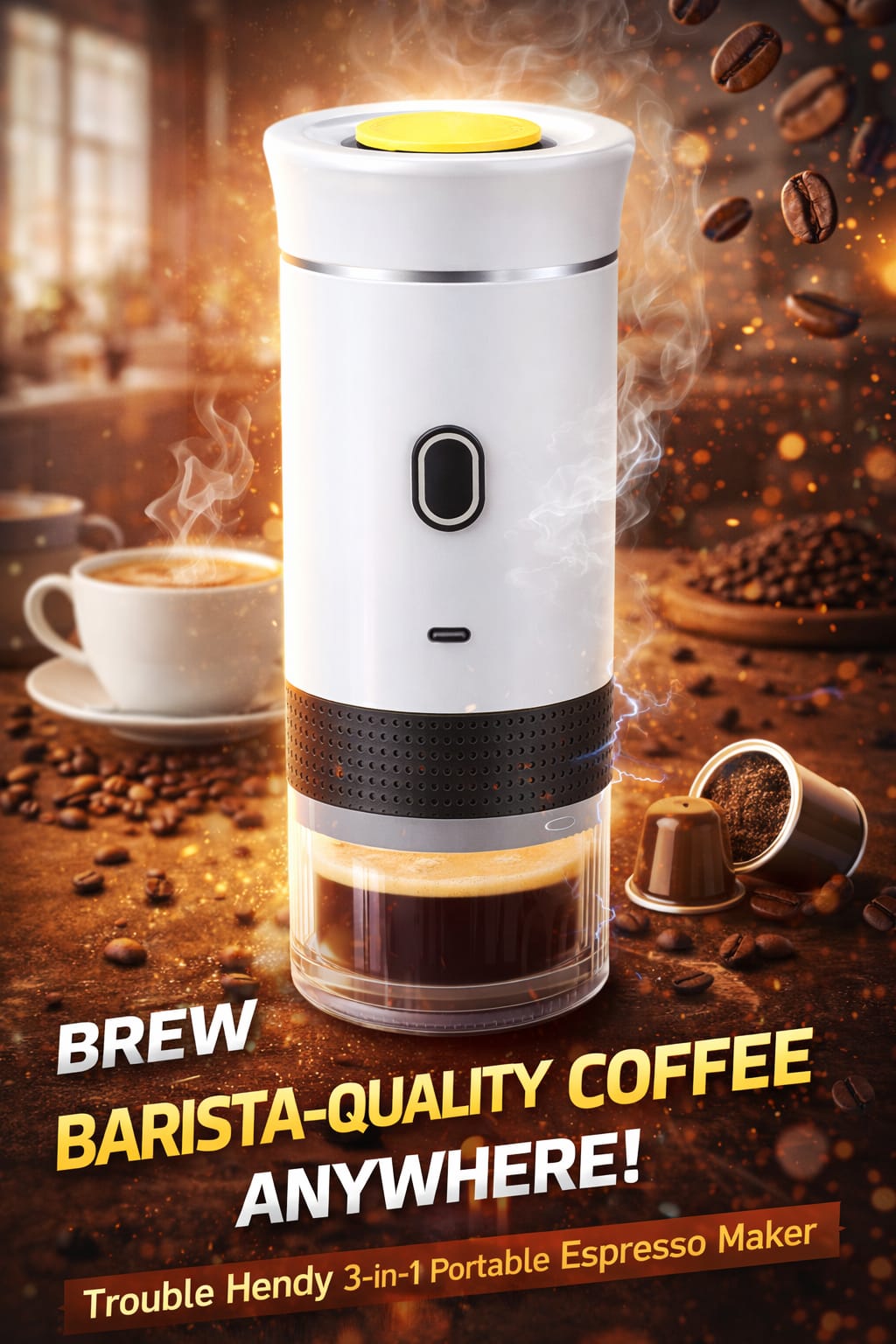 Cafetera espresso, molinillo y máquina portátil en un solo dispositivo.